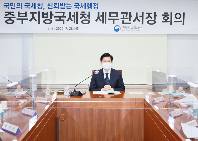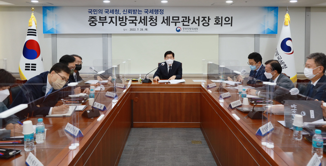 중부지방국세청(청장 김진현)은 28일 본관 10층 회의실에서 관내 세무서장과 지방청 국・과장 등 48명이 참석한 가운데 세무관서장 회의를 개최했다.