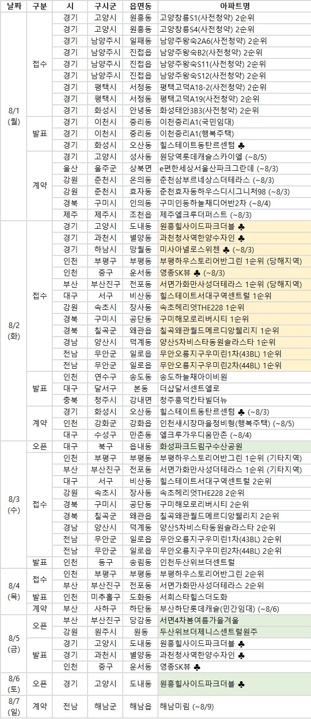 ◇ 청약 접수 단지