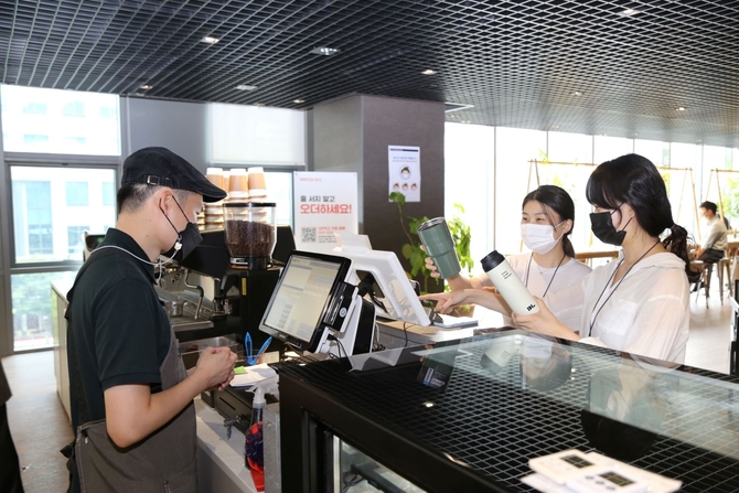 또 사내 카페에서는 텀블러를 이용해 음료를 구입하면 일정 금액을 확인해주는 제도도 상시화했다. 여기에 개인 컵 사용 인증샷 이벤트 등 다양한 홍보 활동을 통해 직원의 자발적인 재활용 컵 사용을 유도했다.