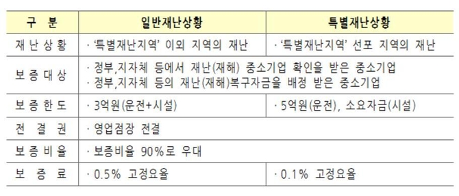 지원대상 중소기업이 이용 중인 기존 보증에 대하여도 1년간 전액 만기 연장함으로써 피해기업의 신속한 복구를 지원할 방침이다.