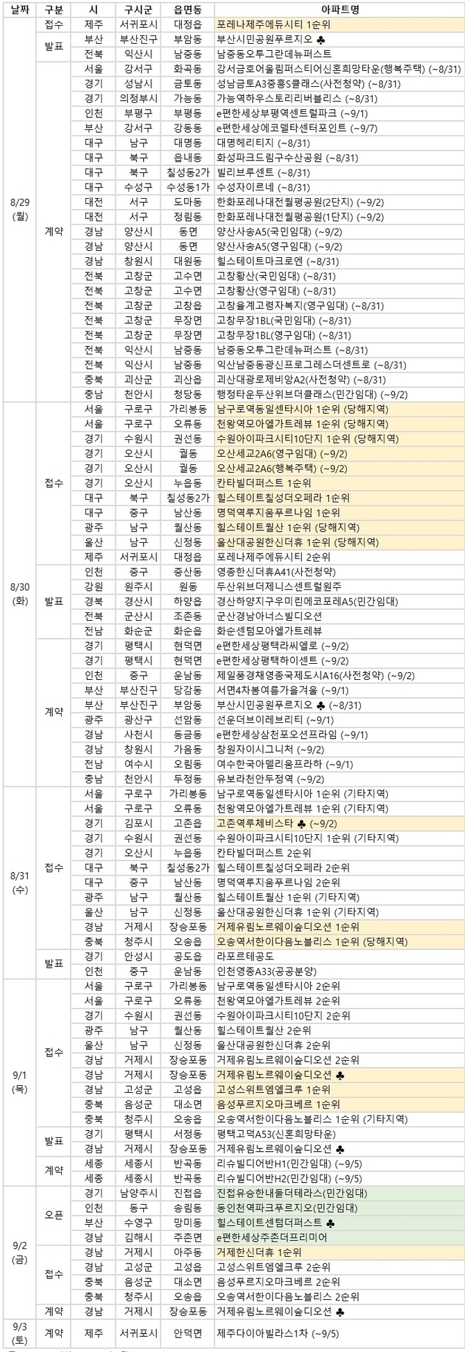 주요 분양물량은 경기 수원시 권선동 '수원아이파크시티10단지', 경기 오산시 누읍동 '칸타빌더퍼스트', 충북 청주시 오송읍 '오송역서한이다음노블리스' 등이다.