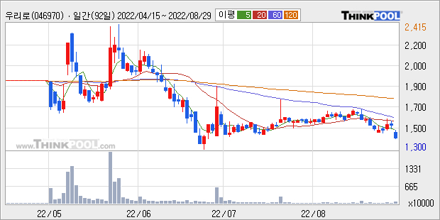 우리로의 2021년 매출액은 1074억으로 전년대비 -3.2% 하락했고, 영업이익은 38억으로 흑자전환했다. 이 회사의 매출액 증감률과 영업이익 증감률은 각각 코스닥 하위 23%, 상위 10%에 해당된다.