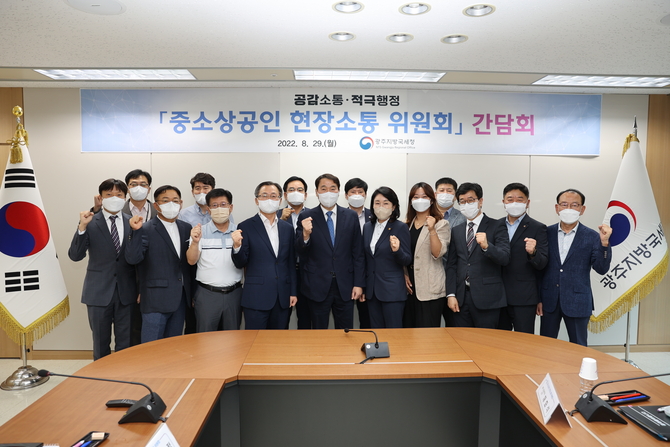 광주국세청은 이날 오후 정부광주합동청사 15층 회의실에서 경제·직능단체 관계자들 참석 하에 ‘중소상공인 현장소통 위원회’ 간담회를 열고, 코로나19 장기화 및 물가상승 등에 따른 중소상공인의 어려움을 듣고 해소하는 방안을 모색했다.