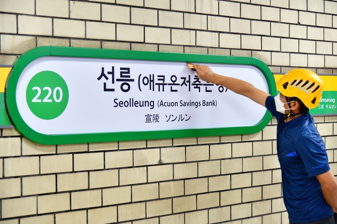 (조세금융신문=진민경 기자) 서울 강남구의 지하철 2호선 선릉역이 선릉(애큐온저축은행)역으로 지난 5일 변경됐다.