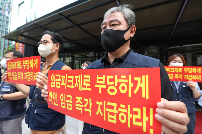 최근 금융노조는 정부와 사측을 상대로 정년 연장과 임금피크제 개선을 요구 중인 상황이다. 국민은행과 산업은행, 기업은행 소속 일부 직원이 회사를 상대로 임금 반환 소송을 제기한 상태다. 이를 두고 임금피크제 폐지에 따른 임금 증가 비용을 우려하는 시각도 제기되고 있다.