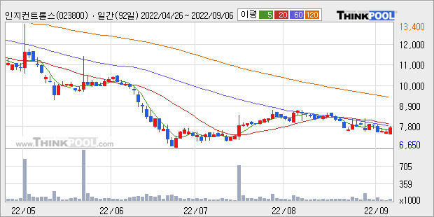 인지컨트롤스는 2021년 매출액 4849억원과 영업이익 20억원을 기록했다. 전년대비 매출은 5.7% 상승했고, 영업이익은 흑자전환했다. 이 회사의 매출액 증감률과 영업이익 증감률은 각각 코스피 하위 31%, 상위 17%에 해당된다.