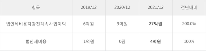 이루온의 지난 3년 동안 법인세 납부액 추이를 보면 2020년에는 감소했으나, 작년에는 4억원으로 크게 증가했다.