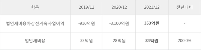 LG헬로비전의 지난 3년 동안 법인세 납부액 추이를 보면 2020년에는 감소했으나, 작년에는 84억원으로 크게 증가했다.