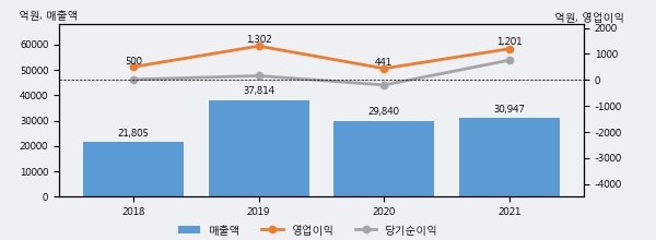 효성중공업은 2021년 매출액 3조 947억원과 영업이익 1201억원을 기록했다. 전년대비 매출은 3.7%, 영업이익은 172.5% 각각 상승했다. 이 회사의 매출액 증감률과 영업이익 증감률은 각각 코스피 하위 28%, 상위 17%에 해당된다.