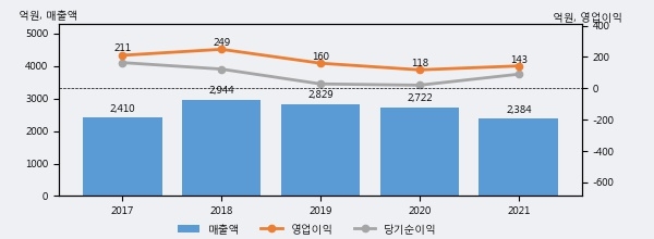 최근 3년간의 실적을 살펴보면, 매출액은 3년 연속 하락하고 있고 그 하락폭이 확대되고 있어서 투자자들은 주의깊게 살펴볼 필요가 있다.