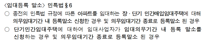 임대사업자 등록 말소의 경우 종부세법 시행령 10조 3항에서는 민특법 6조에 따른 말소여야 종부세 대상에서 제외하니 참고할 필요가 있다.