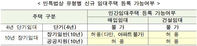 2020년 7월 11일 이후 민간임대주택 합산배제 제도가 바뀌어서 민간임대주택 등록 가능 여부가 주택을 사들여서 임대하는 매입임대, 새 집 지어서 임대하는 건설임대에 따라 다르기에 요건을 살펴야 한다.