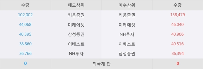 거래원 동향은 미래에셋, NH투자, 삼성증권 등이 매수 상위 목록에 나타나고 있다.