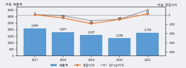 화천기계의 2021년 매출액은 1759억으로 전년대비 28.6% 상승했고, 영업이익은 13억으로 흑자전환했다. 이 회사의 매출액 증감률과 영업이익 증감률은 각각 코스피 상위 24%, 상위 23%에 해당된다.