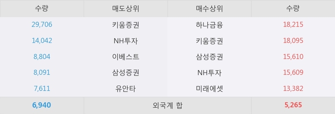 거래원 동향은 하나금융, 삼성증권, NH투자 등이 매수 상위 목록에 나타나고 있다.
