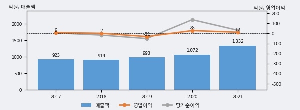 [그래프]성호전자 연간 실적 추이