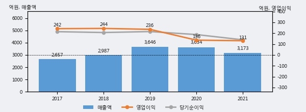 삼호개발의 2021년 매출액은 3173억으로 전년대비 -12.7% 하락했고, 영업이익 역시 131억으로 전년대비 -4.0% 하락했다. 이 회사의 매출액 증감률과 영업이익 증감률은 각각 코스피 하위 6%, 하위 35%에 해당된다.