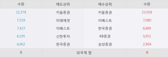 아직까지 외국계 증권사 창구를 통한 매매는 발생하지 않고 있다. 그리고 이 시간 이베스트가 매수창구상위에 올라있는 종목은 이 종목 이외에도 미래에셋 레버리지 원유선물혼합 ETN(H), 애니플러스 등이 있다.