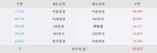 거래원 동향은 JP모건, NH투자, 미래에셋 등이 매수 상위 목록에 나타나고 있다.