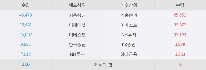 거래원 동향은 NH투자, 하나금융 등이 매수 상위 목록에 나타나고 있다.