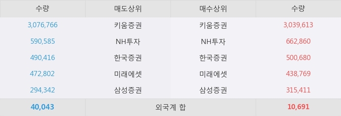 거래원 동향은 NH투자, 미래에셋, 삼성증권 등이 매수 상위 목록에 나타나고 있다.