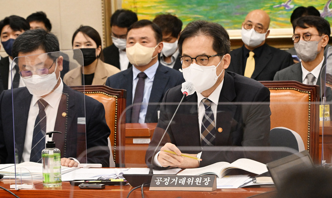 한기정 공정거래위원장은 21일 국회 정무위원회의 공정위 종합국감에서 더불어민주당 김종민 의원이 "작년 국감에서 김범수 의장의 개인 회사인 케이큐브홀딩스의 금산분리 위반 사항을 공정위가 조사한다고 했는데 이후에 국회에 보고가 됐느냐"고 묻자 이렇게 답했다.