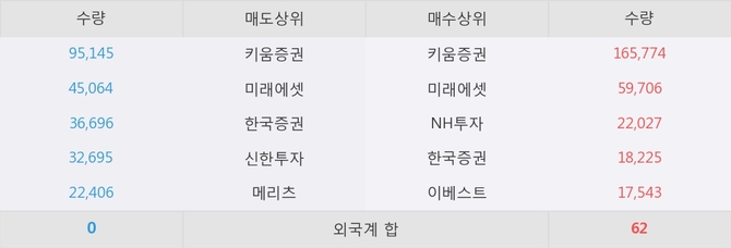 거래원 동향은 미래에셋, NH투자 등이 매수 상위 목록에 나타나고 있다.
