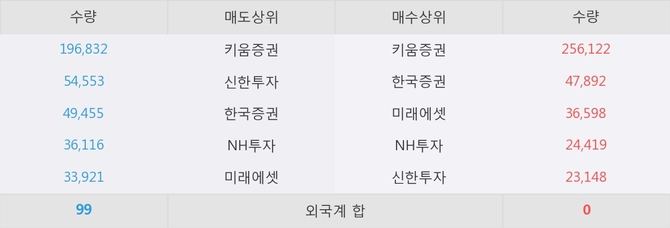 거래원 동향은 미래에셋, NH투자 등이 매수 상위 목록에 나타나고 있다.