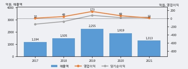 제이엔케이히터는 2021년 매출액 1313억원과 영업이익 13억원을 기록했다. 전년대비 매출은 -31.6%, 영업이익은 -80.7% 각각 하락했다. 이 회사의 매출액 증감률과 영업이익 증감률은 각각 코스닥 하위 7%, 하위 17%에 해당된다.