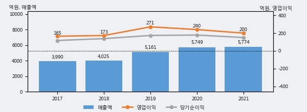 최근 3년간의 실적을 살펴보면 안정적 성장세를 보이고 있다. 최근 3년간 매출로 볼 때 매년 꾸준히 증가하고 있다. 다만 최근에 그 증가폭이 다소 감소하고 있다.