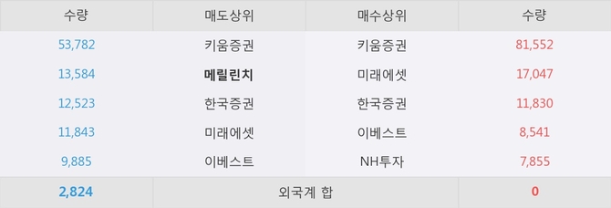 거래원 동향은 미래에셋, NH투자 등이 매수 상위 목록에 나타나고 있다. 한편, 매도 창구 상위에는 메릴린치가 눈에 띄고 있다.
