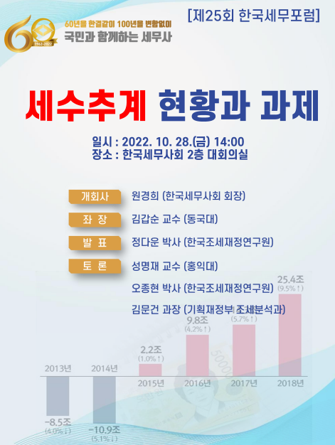이번 제25회 한국세무포럼은 '세수추계 현황과 과제'라는 주제로 진행된다.