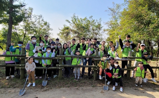 이번 생태숲 가꾸기 봉사활동은 노을공원 나무자람터에서 지난 22일과 29일 2회에 걸쳐 진행됐으며 현대엔지니어링 임직원과 가족 80여명이 참여해 상수리나무 총 200주를 심었다.