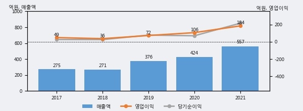 최근 3년간의 실적을 살펴보면 안정적 성장세를 보이고 있다. 최근 3년간 매출로 볼 때 매년 증가하고 있고 그 증가폭도 확대되고 있다.