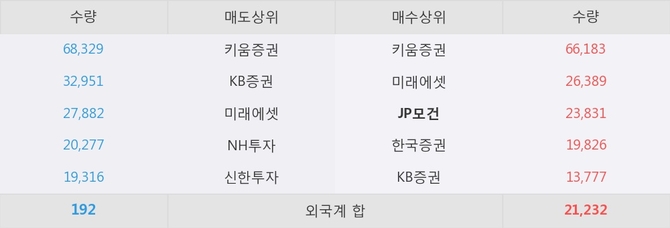 거래원 동향은 JP모건, 미래에셋이 매수 상위 목록에 나타나고 있다.