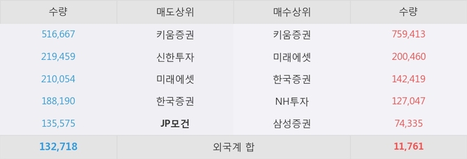거래원 동향은 미래에셋, NH투자, 삼성증권 등이 매수 상위 목록에 나타나고 있다. 한편, 매도 창구 상위에는 JP모건이 눈에 띄고 있다.