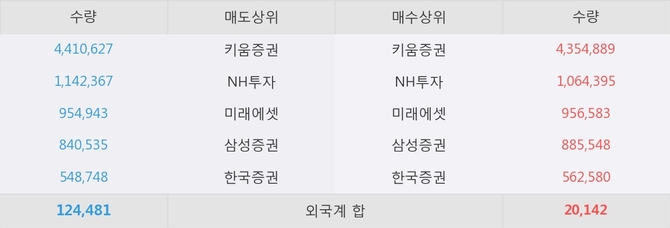 거래원 동향은 NH투자, 미래에셋, 삼성증권 등이 매수 상위 목록에 나타나고 있다.