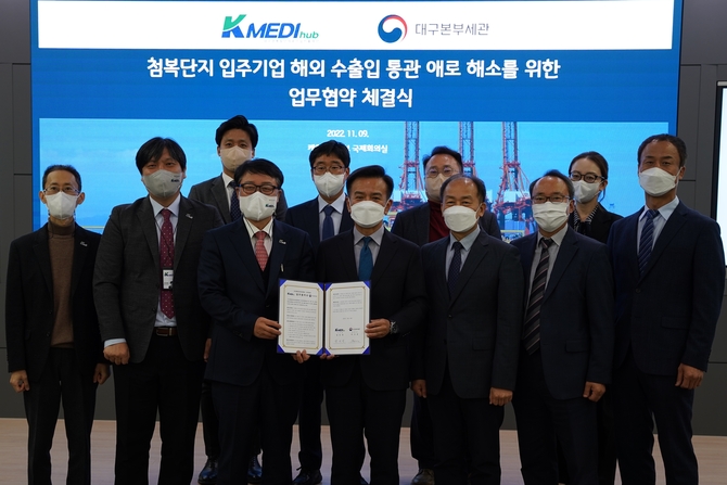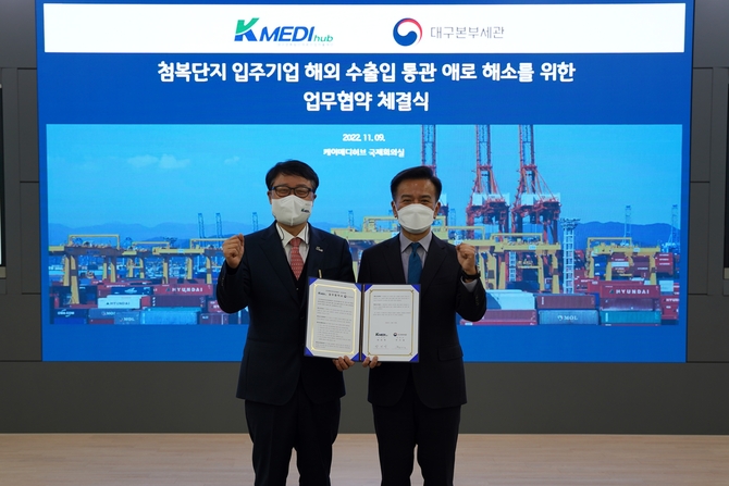 이번 업무협약은 케이메디허브 입주기업들의 자유무역협정(FTA) 활용률을 높이고, 의료기기・의약품의 수출입과 관련해 국내외에서 겪는 애로사항을 해소하는 등 대외 수출경쟁력 강화를 위해 추진됐다.