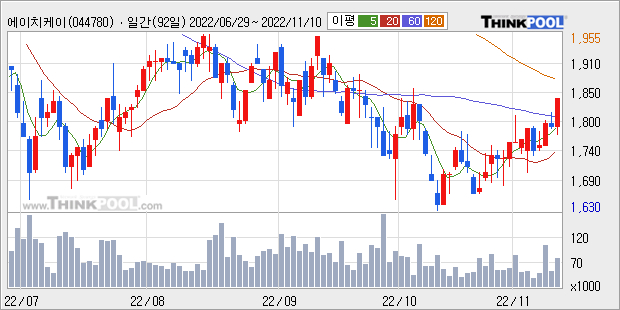 에이치케이의 2021년 매출액은 718억으로 전년대비 29.4% 상승했고, 영업이익 또한 44억으로 전년대비 209.2% 상승했다. 이 회사의 매출액 증감률과 영업이익 증감률은 각각 코스닥 상위 28%, 상위 13%에 해당된다.
