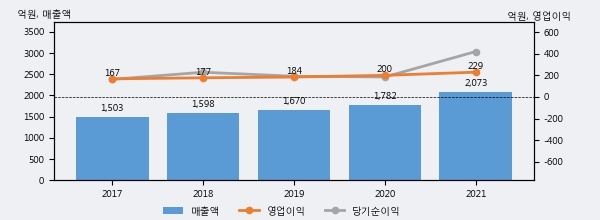 최근 3년간의 실적을 살펴보면 안정적 성장세를 보이고 있다. 최근 3년간 매출로 볼 때 매년 꾸준히 증가하고 있고 그 증가폭도 확대되고 있다.