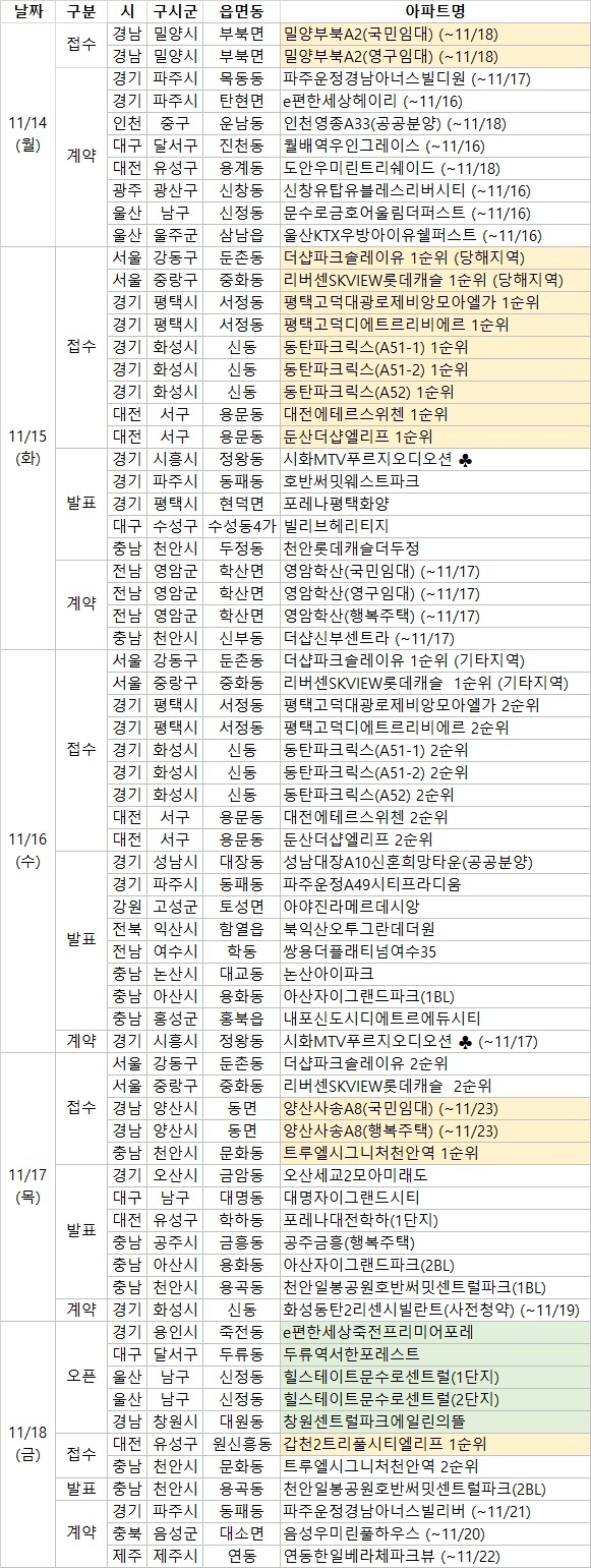 (조세금융신문=이정욱 기자) 11월 세 번째 주 분양 물량은 지난해 같은 기간과 비교 보면 분양 물량이 꽤 줄었다. 이는 금리인상 여파로 분양 시장이 잠잠한 모양새다.