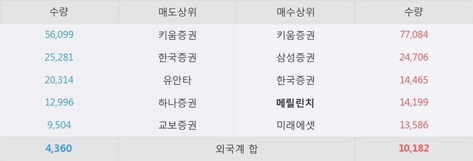 거래원 동향은 메릴린치, 삼성증권, 미래에셋 등이 매수 상위 목록에 나타나고 있다.
