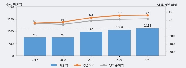 최근 3년간의 실적을 살펴보면 안정적 성장세를 보이고 있다. 최근 3년간 매출로 볼 때 매년 꾸준히 증가하고 있다. 다만 최근에 그 증가폭이 다소 감소하고 있다.