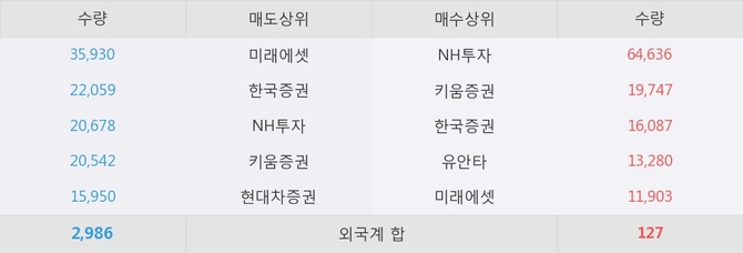 거래원 동향은 NH투자, 미래에셋 등이 매수 상위 목록에 나타나고 있다.