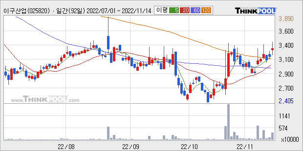 이구산업은 2021년 매출액 3344억원과 영업이익 356억원을 기록했다. 전년대비 매출은 64.8%, 영업이익은 507.0% 각각 상승했다. 이 회사의 매출액 증감률과 영업이익 증감률은 각각 코스피 상위 5%, 상위 8%에 해당된다.