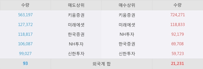 거래원 동향은 미래에셋, NH투자 등이 매수 상위 목록에 나타나고 있다.