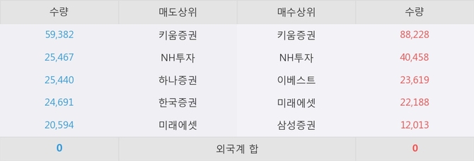 거래원 동향은 NH투자, 미래에셋, 삼성증권 등이 매수 상위 목록에 나타나고 있다.
