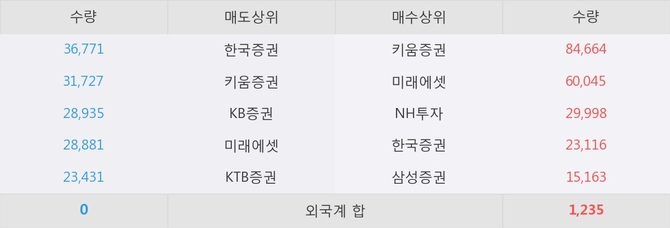 이 시각 주요 거래원은 미래에셋, 한국증권, 키움증권 등이 매도 상위 창구에 자리하고 있다.