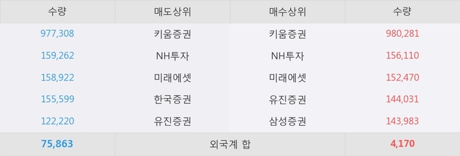 거래원 동향은 NH투자, 미래에셋, 삼성증권 등이 매수 상위 목록에 나타나고 있다.