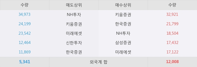 거래원 동향은 NH투자, 삼성증권, 미래에셋 등이 매수 상위 목록에 나타나고 있다.